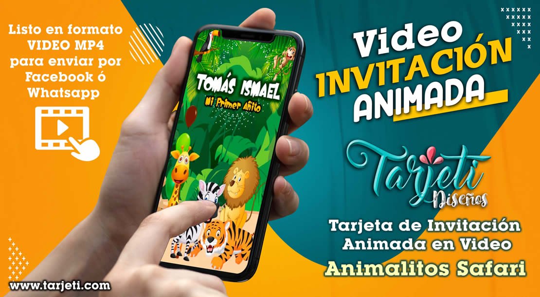 Video Invitación de Animalitos Safari en MP4, ahorra tiempo y dinero enviando de esta forma novedosa tus invitaciones, te enviamos el video en formato MP4 para reenviar a todos tus contactos de Whatsapp, Facebook, TikTok etc., te brindamos este servicio personalizando el texto con el nombre del cumpleañero o cumpleañera, día, hora, lugar y 3 fotos.