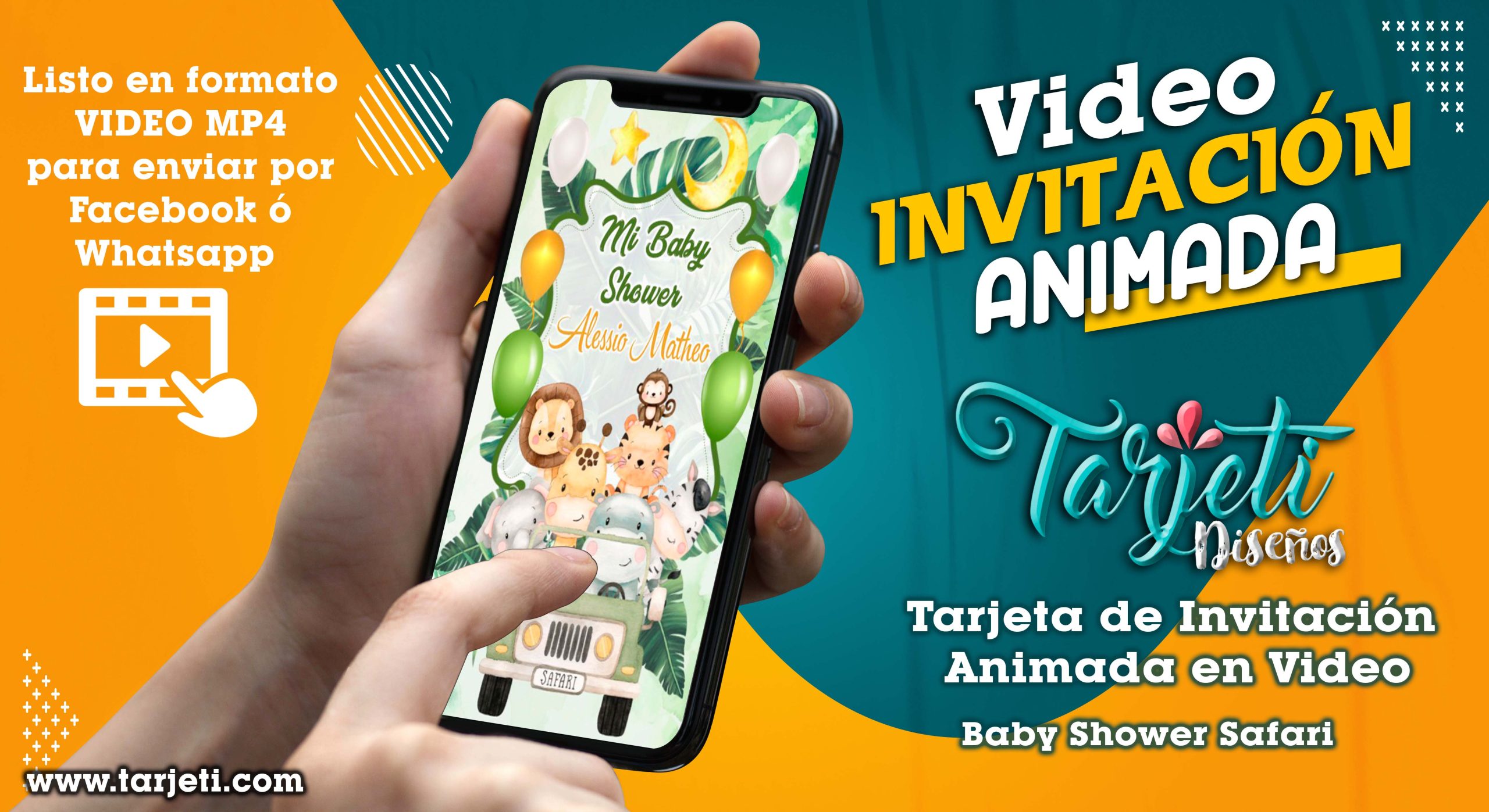 Video Invitación de Baby Shower Safari Animalitos en MP4, ahorra tiempo y dinero enviando de esta forma novedosa tus invitaciones, te enviamos el video en formato MP4 para reenviar a todos tus contactos de Whatsapp, Facebook, TikTok etc., te brindamos este servicio personalizando el texto con el nombre del cumpleañero o cumpleañera, día, hora, lugar y 3 fotos.