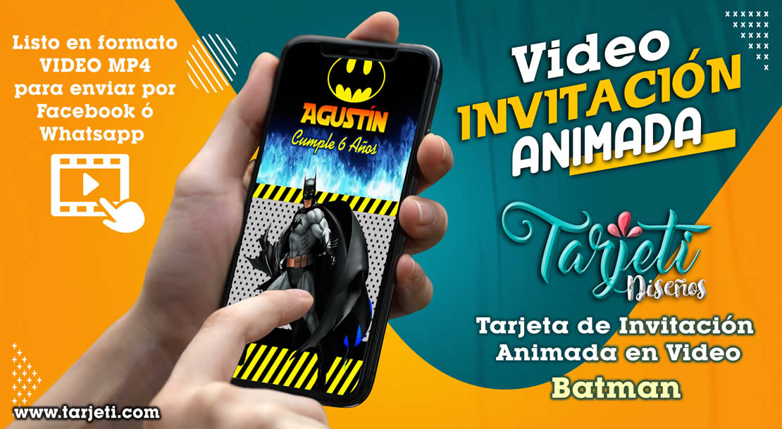 Video Invitación de Batman en MP4, ahorra tiempo y dinero enviando de esta forma novedosa tus invitaciones, te enviamos el video en formato MP4 para reenviar a todos tus contactos de Whatsapp, Facebook, TikTok etc., te brindamos este servicio personalizando el texto con el nombre del cumpleañero o cumpleañera, día, hora, lugar y 3 fotos.