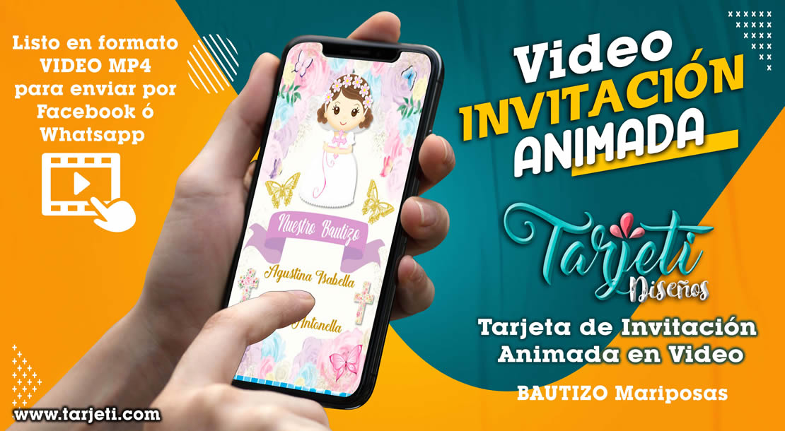 Video Invitación de Bautizo de Dos Niñas Mariposas en MP4, ahorra tiempo y dinero enviando de esta forma novedosa tus invitaciones, te enviamos el video en formato MP4 para reenviar a todos tus contactos de Whatsapp, Facebook, TikTok etc., te brindamos este servicio personalizando el texto con el nombre del cumpleañero o cumpleañera, día, hora, lugar y 3 fotos.