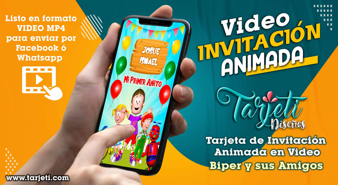 Video Invitación de Biper y sus Amigos en MP4, ahorra tiempo y dinero enviando de esta forma novedosa tus invitaciones, te enviamos el video en formato MP4 para reenviar a todos tus contactos de Whatsapp, Facebook, TikTok etc., te brindamos este servicio personalizando el texto con el nombre del cumpleañero o cumpleañera, día, hora, lugar y 3 fotos.