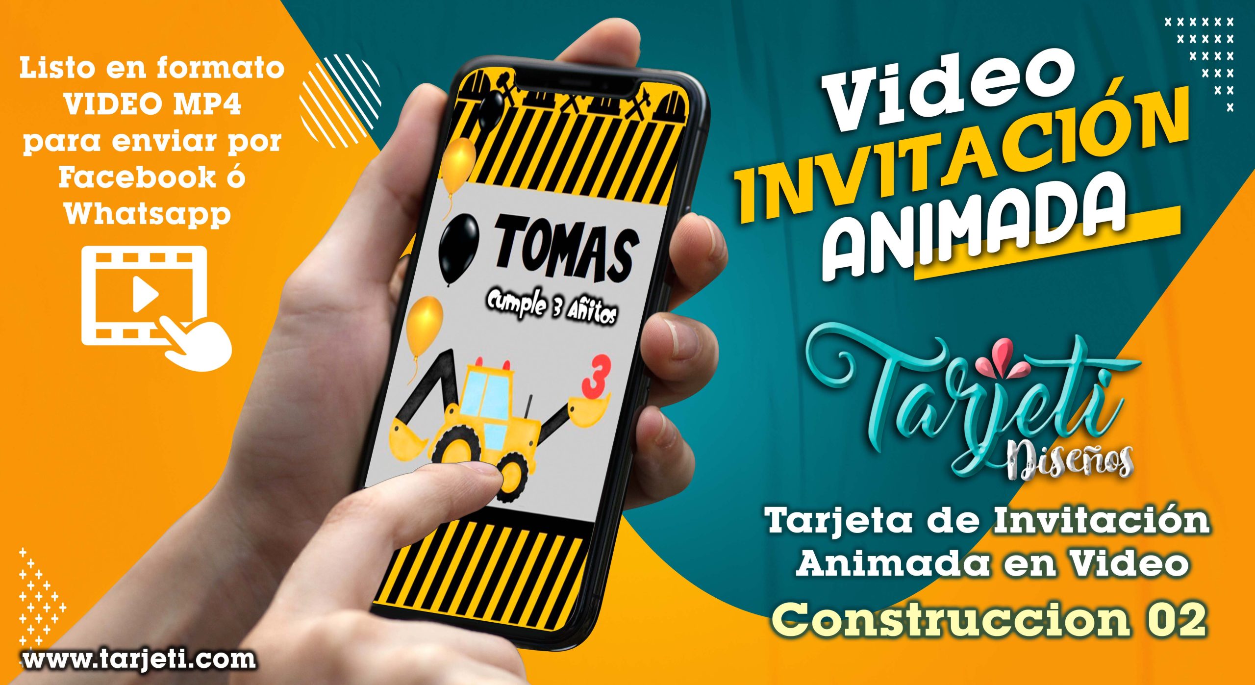 Video Invitación de Construccion 02 en MP4, ahorra tiempo y dinero enviando de esta forma novedosa tus invitaciones, te enviamos el video en formato MP4 para reenviar a todos tus contactos de Whatsapp, Facebook, TikTok etc., te brindamos este servicio personalizando el texto con el nombre del cumpleañero o cumpleañera, día, hora, lugar y 3 fotos.