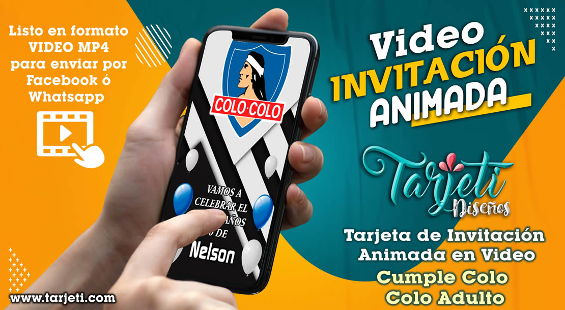 Video Invitación de Cumple Colo Colo Adulto en MP4, ahorra tiempo y dinero enviando de esta forma novedosa tus invitaciones, te enviamos el video en formato MP4 para reenviar a todos tus contactos de Whatsapp, Facebook, TikTok etc., te brindamos este servicio personalizando el texto con el nombre del cumpleañero o cumpleañera, día, hora, lugar y 3 fotos.