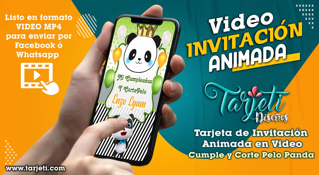 Video Invitación de Cumple y Corte Pelo Panda en MP4, ahorra tiempo y dinero enviando de esta forma novedosa tus invitaciones, te enviamos el video en formato MP4 para reenviar a todos tus contactos de Whatsapp, Facebook, TikTok etc., te brindamos este servicio personalizando el texto con el nombre del cumpleañero o cumpleañera, día, hora, lugar y 3 fotos.