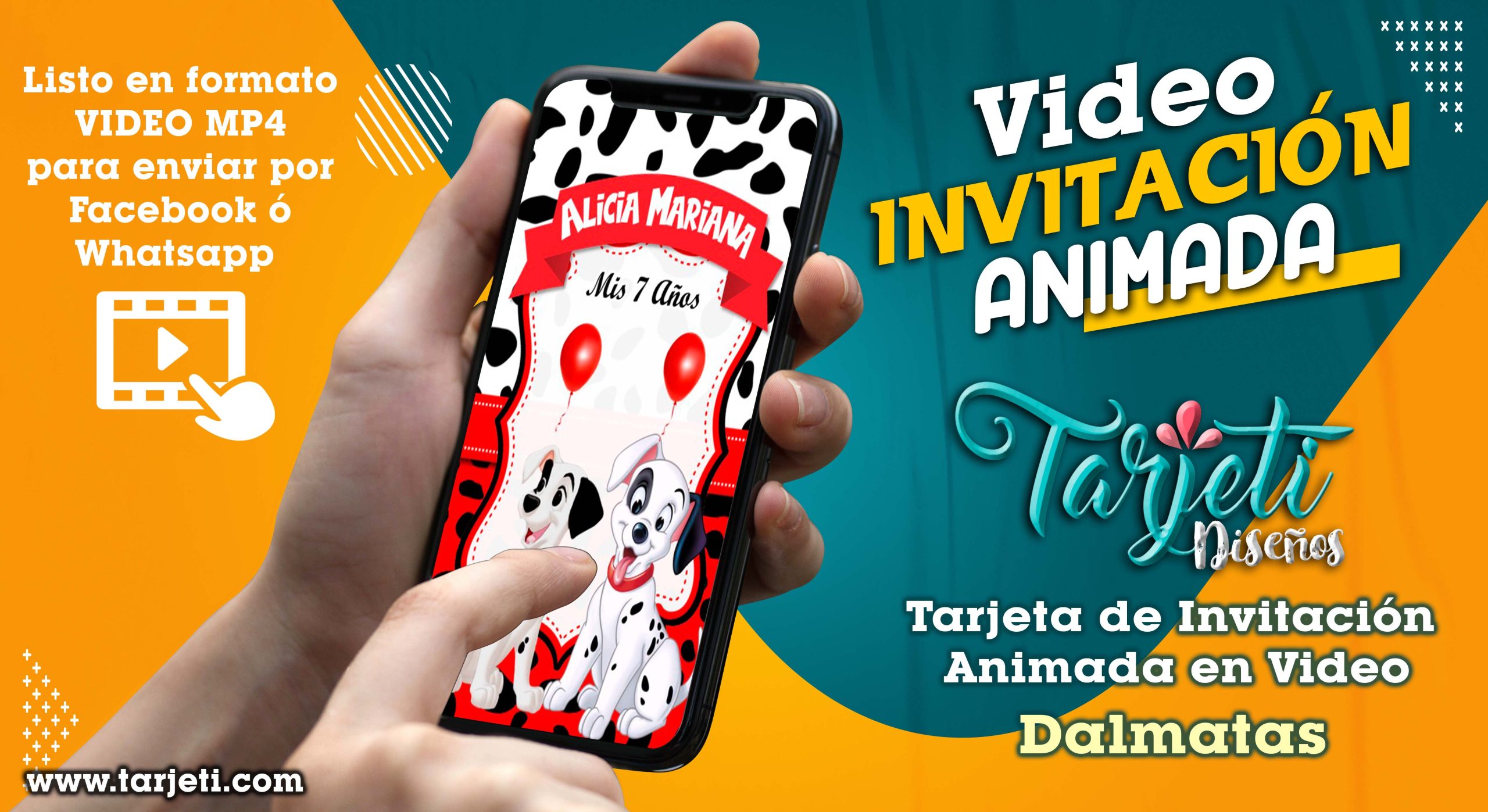 Video Invitación de Dalmatas en MP4, ahorra tiempo y dinero enviando de esta forma novedosa tus invitaciones, te enviamos el  video en formato MP4 para reenviar a todos tus contactos de Whatsapp, Facebook, TikTok etc., te brindamos este servicio  personalizando el texto con el nombre del cumpleañero o cumpleañera, día, hora, lugar y 3 fotos.