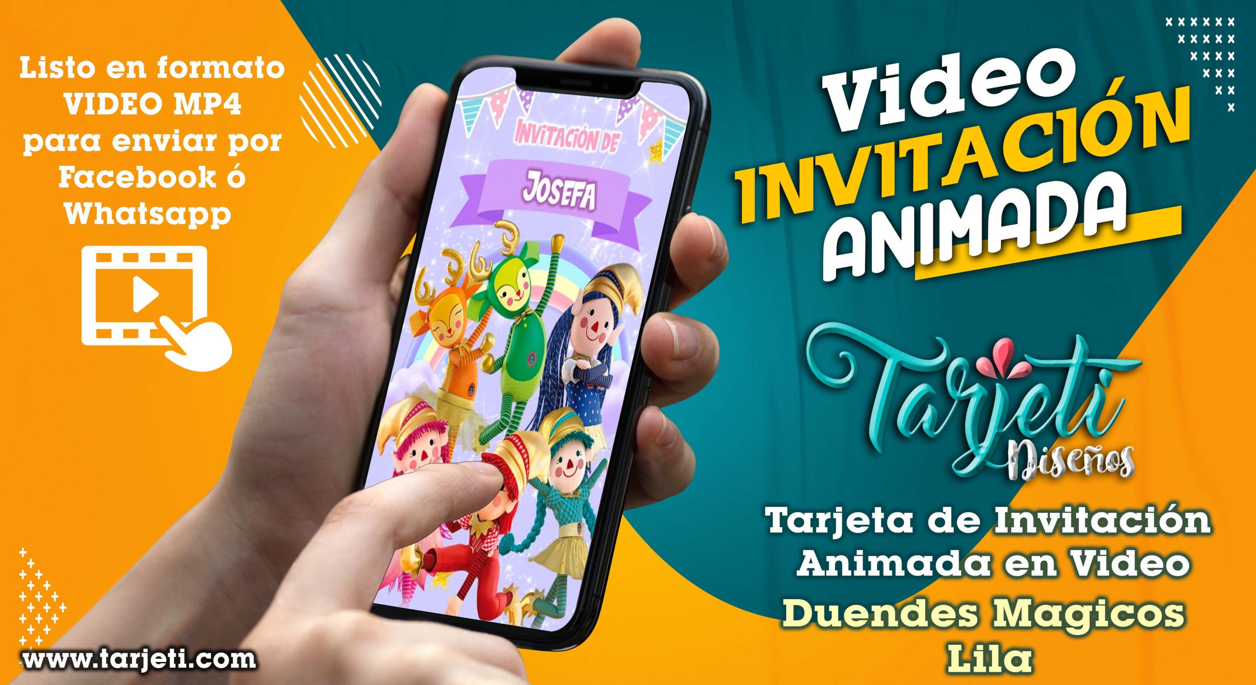 Video Invitación de Duendes Magicos Lila en MP4, ahorra tiempo y dinero enviando de esta forma novedosa tus invitaciones, te enviamos el video en formato MP4 para reenviar a todos tus contactos de Whatsapp, Facebook, TikTok etc., te brindamos este servicio personalizando el texto con el nombre del cumpleañero o cumpleañera, día, hora, lugar y 3 fotos.