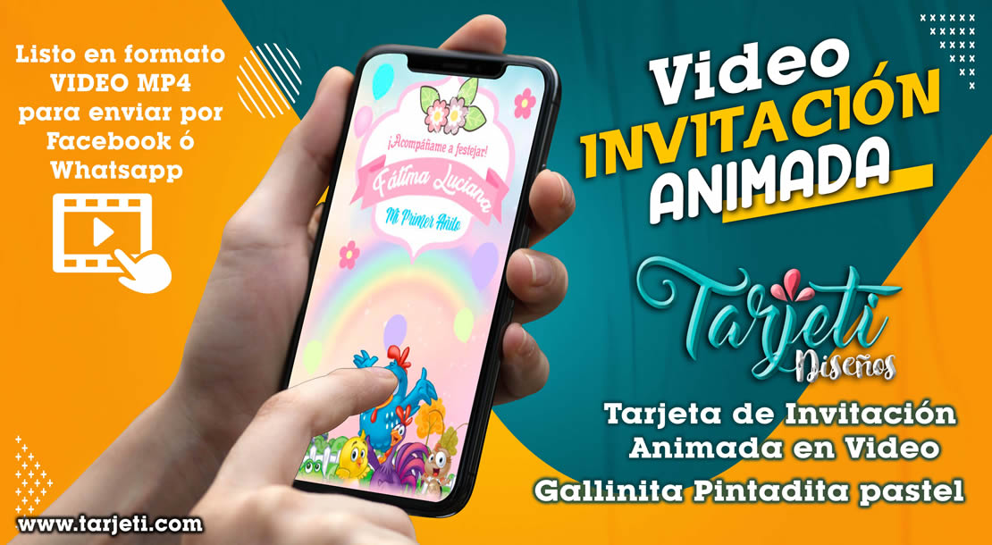 Video Invitación de Gallina Pintadita Pastel en MP4, ahorra tiempo y dinero enviando de esta forma novedosa tus invitaciones, te enviamos el video en formato MP4 para reenviar a todos tus contactos de Whatsapp, Facebook, TikTok etc., te brindamos este servicio personalizando el texto con el nombre del cumpleañero o cumpleañera, día, hora, lugar y 3 fotos.