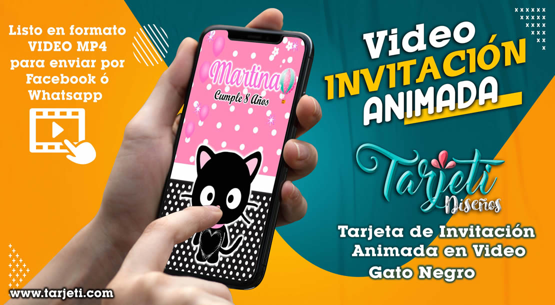 Video Invitación de Gato Negro en MP4, ahorra tiempo y dinero enviando de esta forma novedosa tus invitaciones, te enviamos el video en formato MP4 para reenviar a todos tus contactos de Whatsapp, Facebook, TikTok etc., te brindamos este servicio personalizando el texto con el nombre del cumpleañero o cumpleañera, día, hora, lugar y 3 fotos.