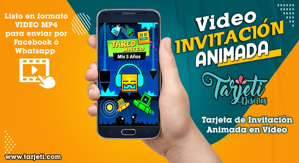 Video Invitación de Geometry Dash en MP4, ahorra tiempo y dinero enviando de esta forma novedosa tus invitaciones, te enviamos el video en formato MP4 para reenviar a todos tus contactos de Whatsapp, Facebook, TikTok etc., te brindamos este servicio personalizando el texto con el nombre del cumpleañero o cumpleañera, día, hora, lugar y 3 fotos.