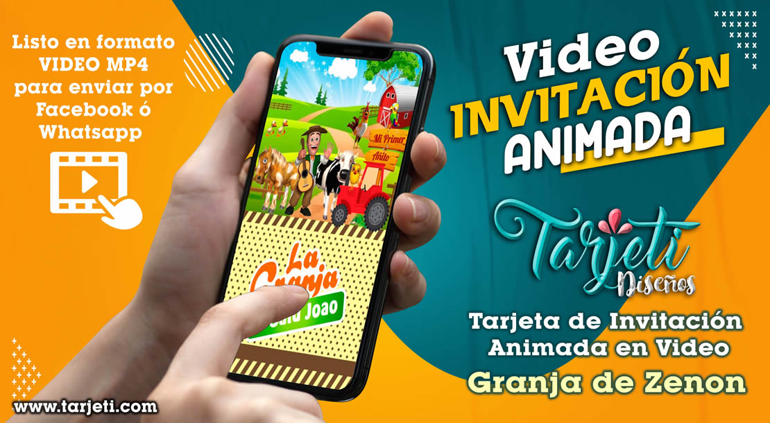 Video Invitación de Granja de Zenon en MP4, ahorra tiempo y dinero enviando de esta forma novedosa tus invitaciones, te enviamos el video en formato MP4 para reenviar a todos tus contactos de Whatsapp, Facebook, TikTok etc., te brindamos este servicio personalizando el texto con el nombre del cumpleañero o cumpleañera, día, hora, lugar y 3 fotos.