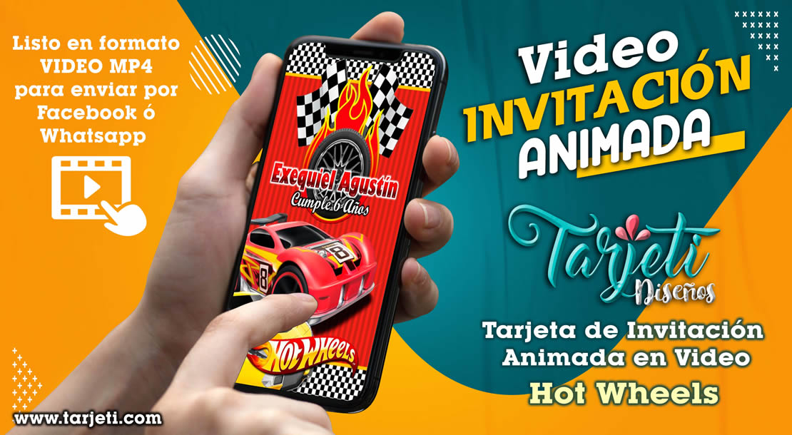 Video Invitación de Hot Wheels en MP4, ahorra tiempo y dinero enviando de esta forma novedosa tus invitaciones, te enviamos el video en formato MP4 para reenviar a todos tus contactos de Whatsapp, Facebook, TikTok etc., te brindamos este servicio personalizando el texto con el nombre del cumpleañero o cumpleañera, día, hora, lugar y 3 fotos.