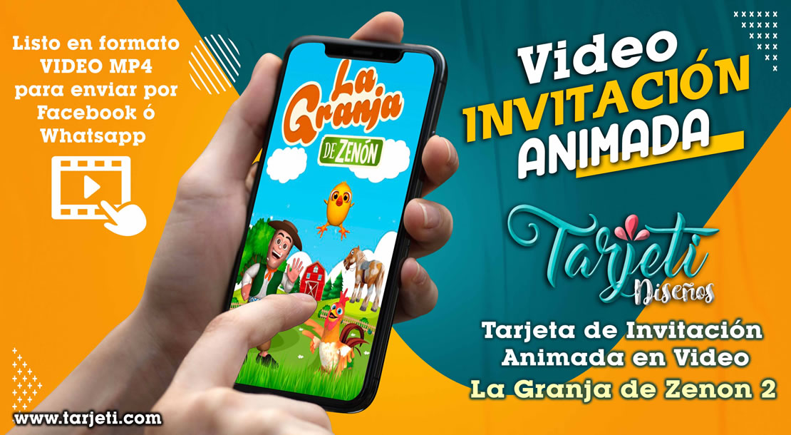 Video Invitación de la Granja de Zenon 02 en MP4, ahorra tiempo y dinero enviando de esta forma novedosa tus invitaciones, te enviamos el video en formato MP4 para reenviar a todos tus contactos de Whatsapp, Facebook, TikTok etc., te brindamos este servicio personalizando el texto con el nombre del cumpleañero o cumpleañera, día, hora, lugar y 3 fotos.