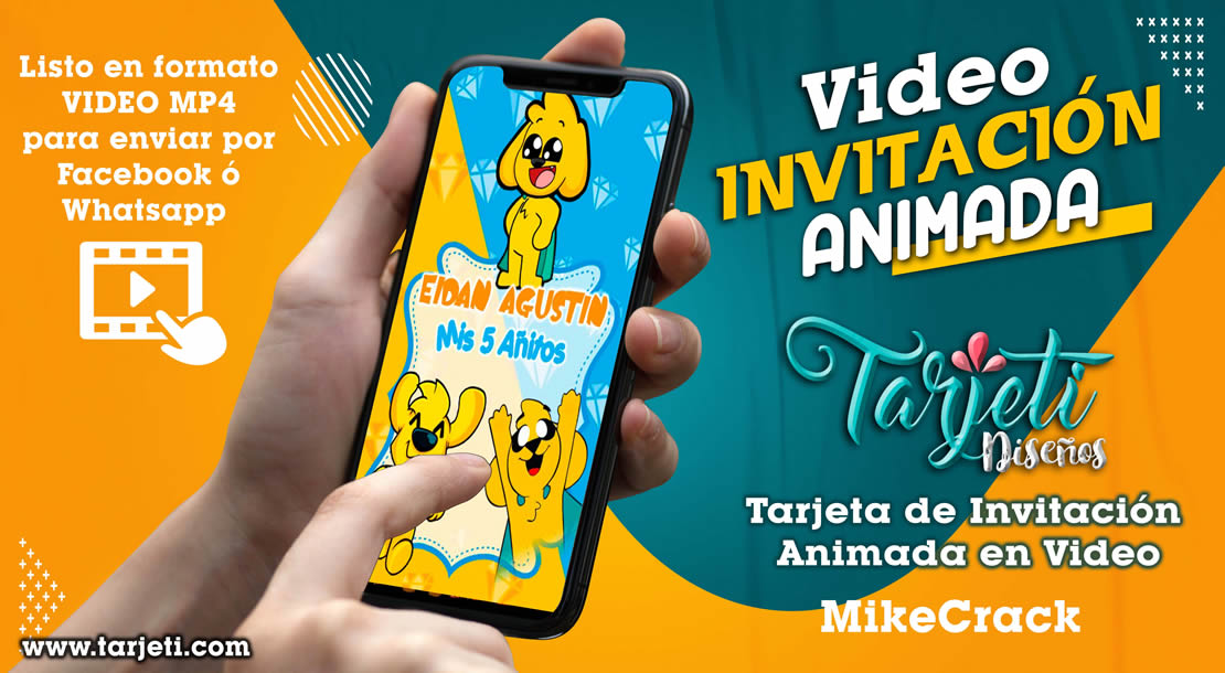 Video Invitación de MikeCrack en MP4, ahorra tiempo y dinero enviando de esta forma novedosa tus invitaciones, te enviamos el video en formato MP4 para reenviar a todos tus contactos de Whatsapp, Facebook, TikTok etc., te brindamos este servicio personalizando el texto con el nombre del cumpleañero o cumpleañera, día, hora, lugar y 3 fotos.
