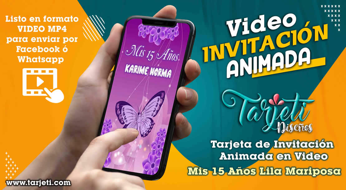 Video Invitación de Mis 15 Años Lila Mariposa en MP4, ahorra tiempo y dinero enviando de esta forma novedosa tus invitaciones, te enviamos el video en formato MP4 para reenviar a todos tus contactos de Whatsapp, Facebook, TikTok etc., te brindamos este servicio personalizando el texto con el nombre del cumpleañero o cumpleañera, día, hora, lugar y 3 fotos.