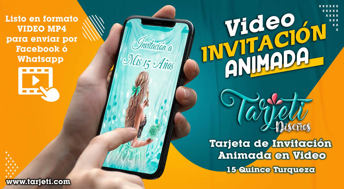 Video Invitación de Mis 15 Años Turquesa en MP4, ahorra tiempo y dinero enviando de esta forma novedosa tus invitaciones, te enviamos el video en formato MP4 para reenviar a todos tus contactos de Whatsapp, Facebook, TikTok etc., te brindamos este servicio personalizando el texto con el nombre del cumpleañero o cumpleañera, día, hora, lugar y 3 fotos.