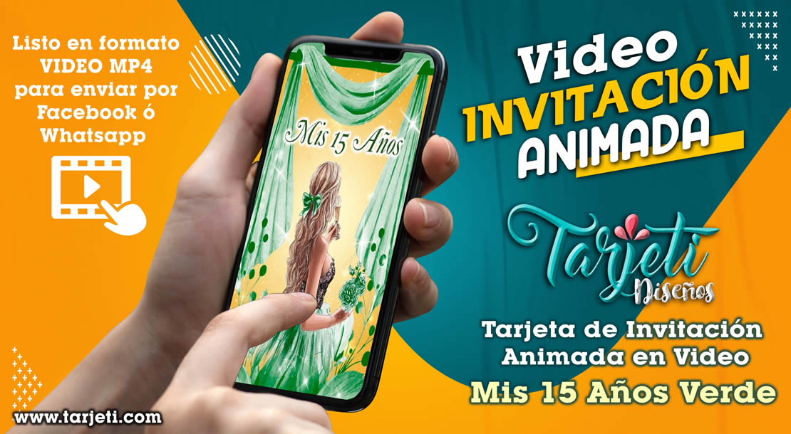 Video Invitación de Mis 15 Años Verde en MP4, ahorra tiempo y dinero enviando de esta forma novedosa tus invitaciones, te enviamos el video en formato MP4 para reenviar a todos tus contactos de Whatsapp, Facebook, TikTok etc., te brindamos este servicio personalizando el texto con el nombre del cumpleañero o cumpleañera, día, hora, lugar y 3 fotos.