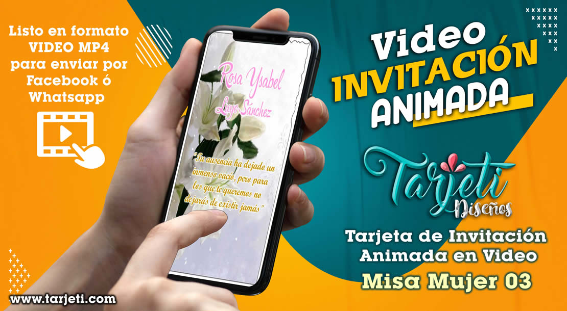 Video Invitación de Misa Mujer 03 en MP4, ahorra tiempo y dinero enviando de esta forma novedosa tus invitaciones, te enviamos el video en formato MP4 para reenviar a todos tus contactos de Whatsapp, Facebook, TikTok etc., te brindamos este servicio personalizando el texto con el nombre del cumpleañero o cumpleañera, día, hora, lugar y 3 fotos.
