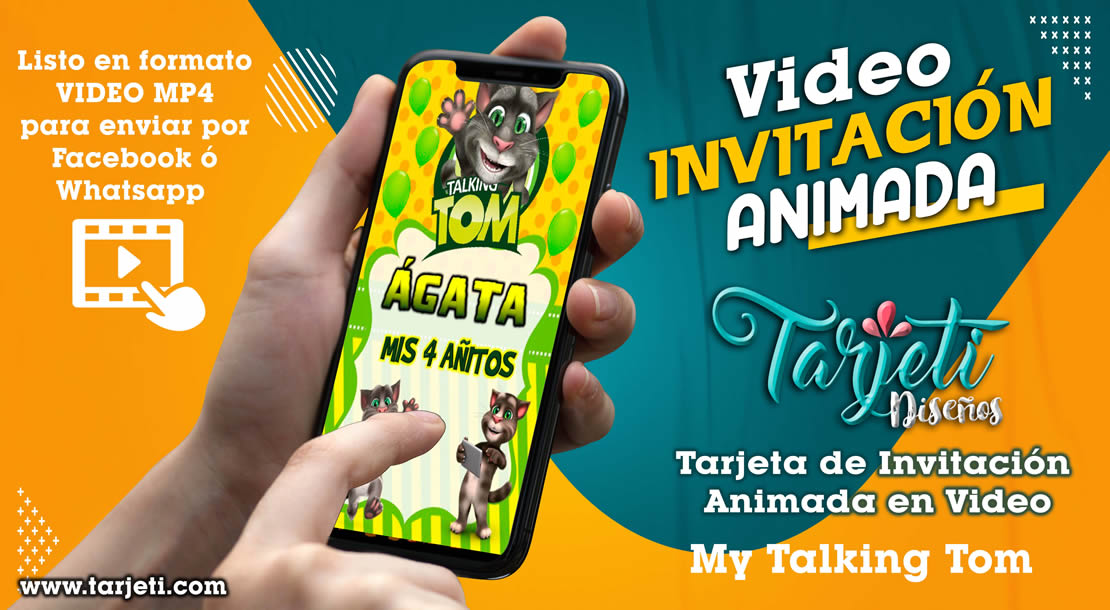 Video Invitación de My Talking Tom en MP4, ahorra tiempo y dinero enviando de esta forma novedosa tus invitaciones, te enviamos el video en formato MP4 para reenviar a todos tus contactos de Whatsapp, Facebook, TikTok etc., te brindamos este servicio personalizando el texto con el nombre del cumpleañero o cumpleañera, día, hora, lugar y 3 fotos.