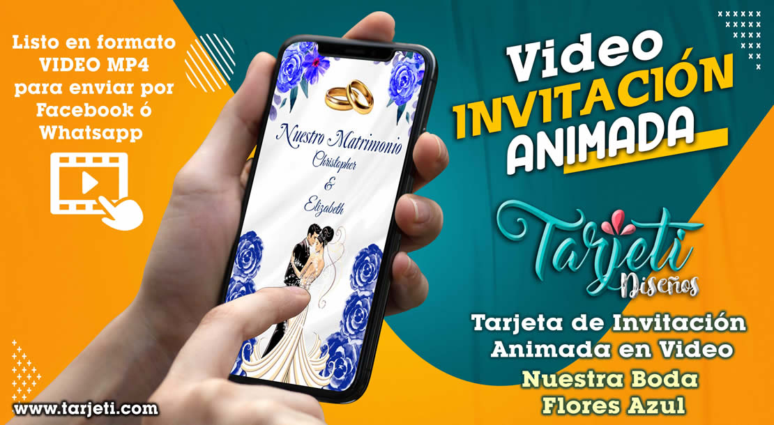 Video Invitación de Nuestra Boda Flores Azul en MP4, ahorra tiempo y dinero enviando de esta forma novedosa tus invitaciones, te enviamos el  video en formato MP4 para reenviar a todos tus contactos de Whatsapp, Facebook, TikTok etc., te brindamos este servicio  personalizando el texto con el nombre del cumpleañero o cumpleañera, día, hora, lugar y 3 fotos.