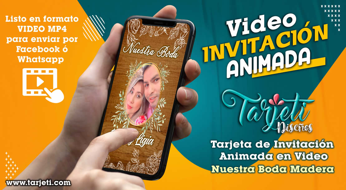 Video Invitación de Nuestra Boda Madera en MP4, ahorra tiempo y dinero enviando de esta forma novedosa tus invitaciones, te enviamos el video en formato MP4 para reenviar a todos tus contactos de Whatsapp, Facebook, TikTok etc., te brindamos este servicio personalizando el texto con el nombre del cumpleañero o cumpleañera, día, hora, lugar y 3 fotos.