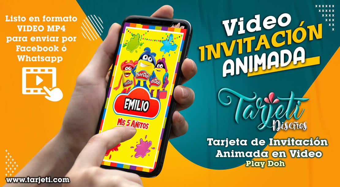 Video Invitación de Play Doh en MP4, ahorra tiempo y dinero enviando de esta forma novedosa tus invitaciones, te enviamos el  video en formato MP4 para reenviar a todos tus contactos de Whatsapp, Facebook, TikTok etc., te brindamos este servicio  personalizando el texto con el nombre del cumpleañero o cumpleañera, día, hora, lugar y 3 fotos.