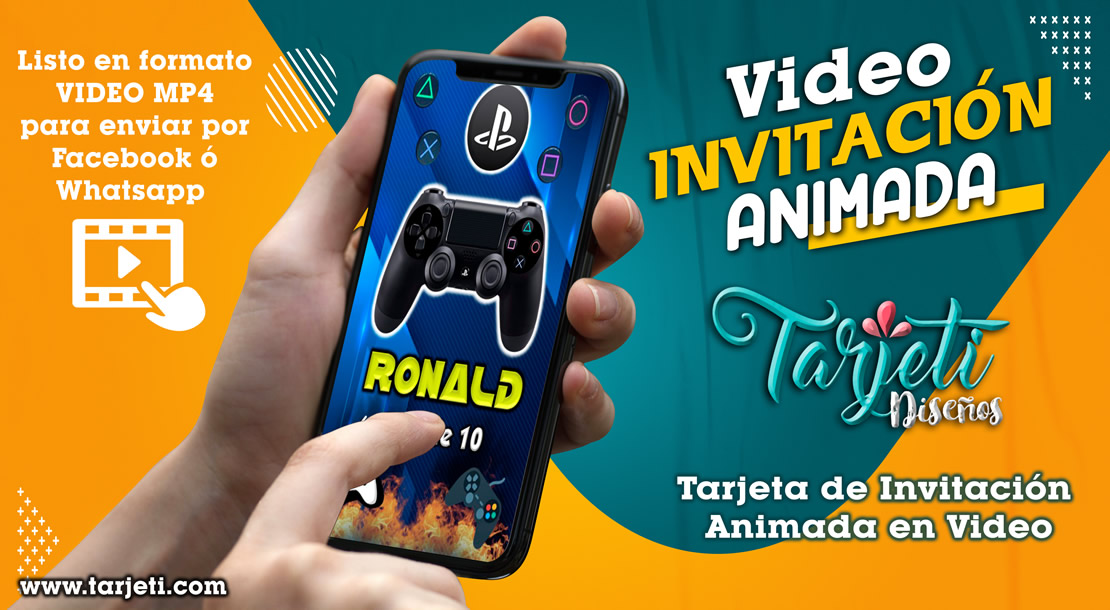 Video Invitación de PlayStation en MP4, ahorra tiempo y dinero enviando de esta forma novedosa tus invitaciones, te enviamos el video en formato MP4 para reenviar a todos tus contactos de Whatsapp, Facebook, TikTok etc., te brindamos este servicio personalizando el texto con el nombre del cumpleañero o cumpleañera, día, hora, lugar y 3 fotos.