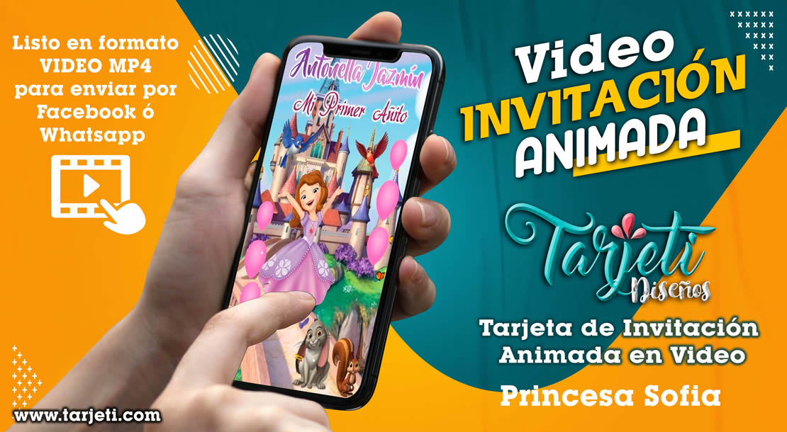Video Invitación de Princesa Sofia en MP4, ahorra tiempo y dinero enviando de esta forma novedosa tus invitaciones, te enviamos el video en formato MP4 para reenviar a todos tus contactos de Whatsapp, Facebook, TikTok etc., te brindamos este servicio personalizando el texto con el nombre del cumpleañero o cumpleañera, día, hora, lugar y 3 fotos.