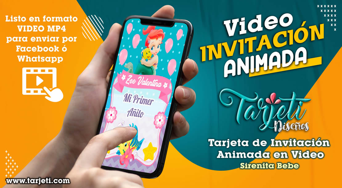 Video Invitación de Sirenita Bebe en MP4, ahorra tiempo y dinero enviando de esta forma novedosa tus invitaciones, te enviamos el video en formato MP4 para reenviar a todos tus contactos de Whatsapp, Facebook, TikTok etc., te brindamos este servicio personalizando el texto con el nombre del cumpleañero o cumpleañera, día, hora, lugar y 3 fotos.