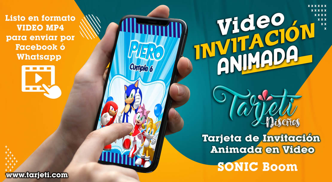 Video Invitación de SONIC Boom en MP4, ahorra tiempo y dinero enviando de esta forma novedosa tus invitaciones, te enviamos el video en formato MP4 para reenviar a todos tus contactos de Whatsapp, Facebook, TikTok etc., te brindamos este servicio personalizando el texto con el nombre del cumpleañero o cumpleañera, día, hora, lugar y 3 fotos.