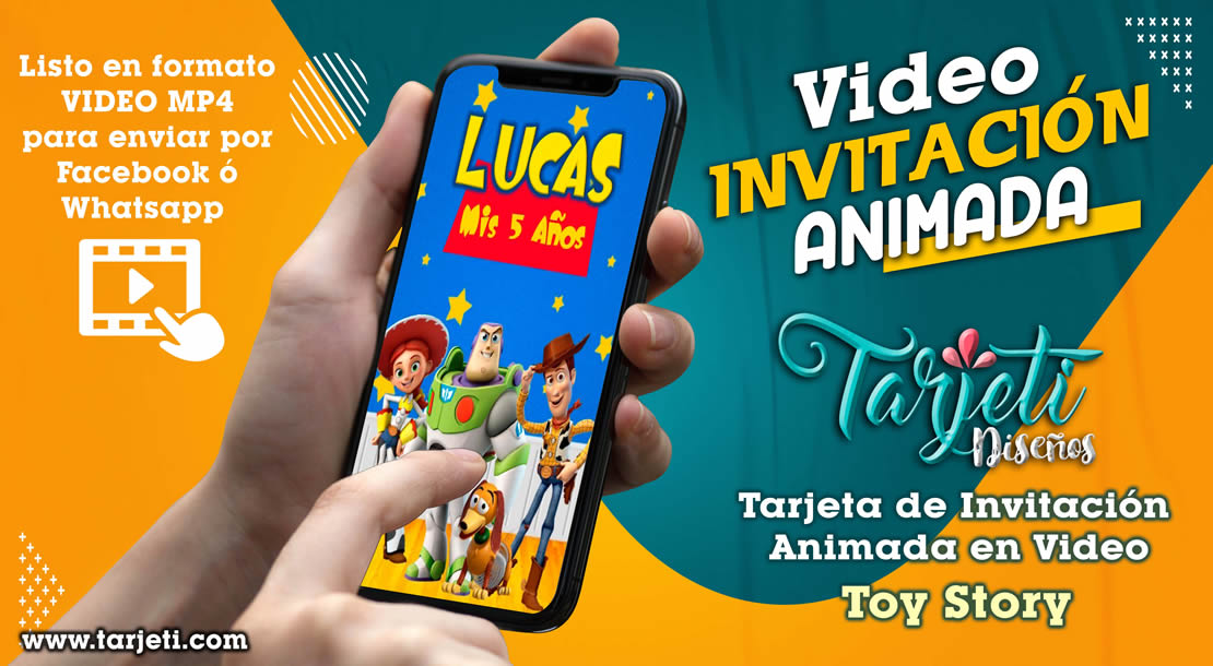 Video Invitación de Toy Story en MP4, ahorra tiempo y dinero enviando de esta forma novedosa tus invitaciones, te enviamos el video en formato MP4 para reenviar a todos tus contactos de Whatsapp, Facebook, TikTok etc., te brindamos este servicio personalizando el texto con el nombre del cumpleañero o cumpleañera, día, hora, lugar y 3 fotos.