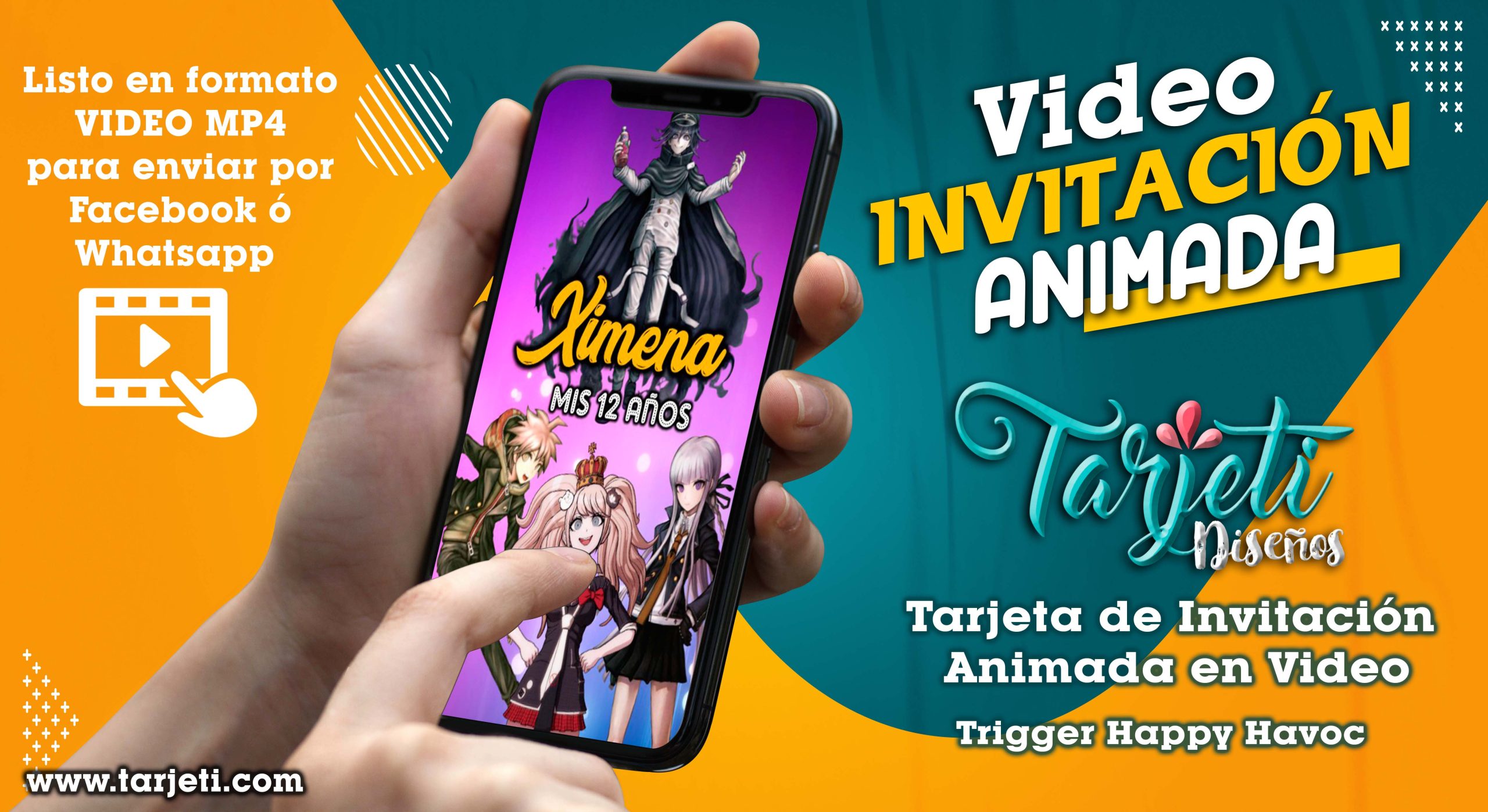 Video Invitación de Trigger Happy Havoc en MP4, ahorra tiempo y dinero enviando de esta forma novedosa tus invitaciones, te enviamos el video en formato MP4 para reenviar a todos tus contactos de Whatsapp, Facebook, TikTok etc., te brindamos este servicio personalizando el texto con el nombre del cumpleañero o cumpleañera, día, hora, lugar y 3 fotos.